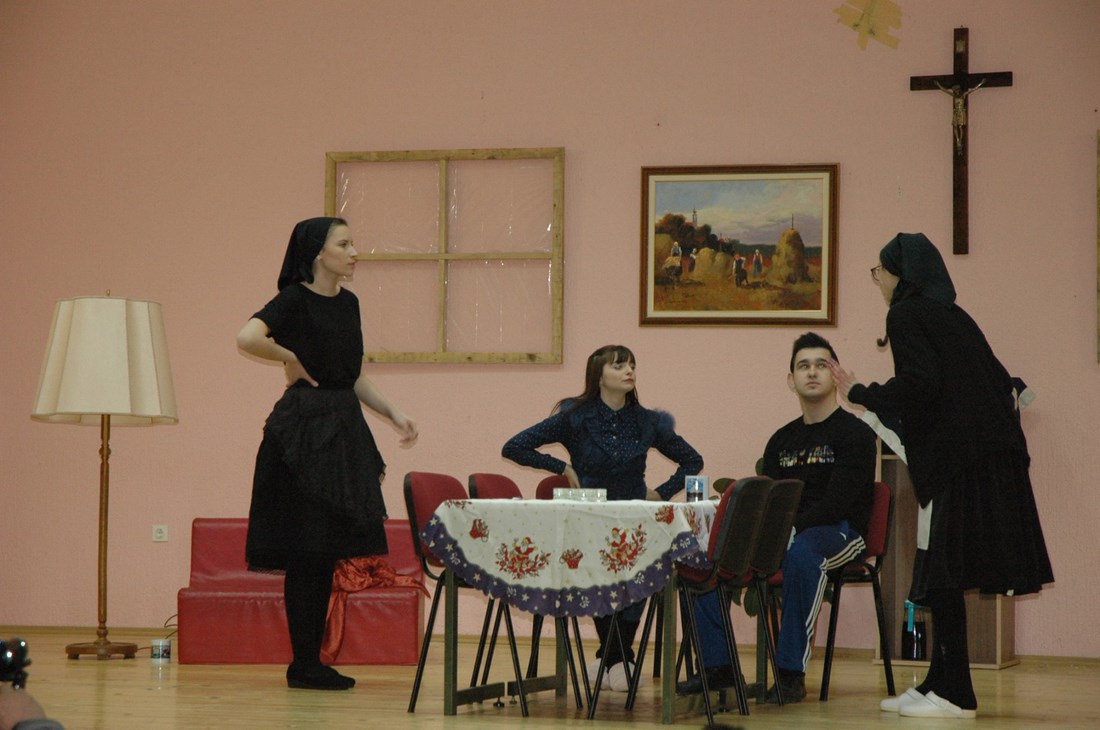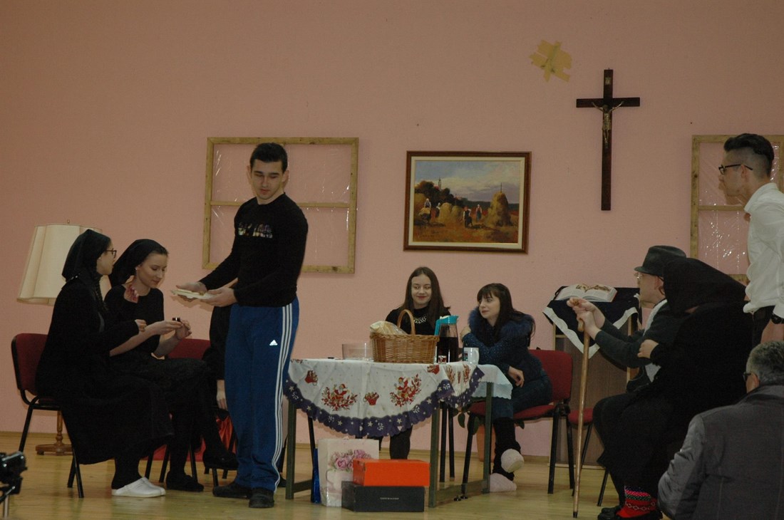 Izvedbu su uprizorile članice dramske sekcije pod nazivom "Malim koracima do velikih djela" naše Frame i ministrantske zajednice a pjesme za vrijeme predstave animirao je župni zbor sv. Ane. Svoje uloge vrsno je odglumilo devet glumaca, koji su odradili sve pripreme. Predstava je pripremljena u gotovo rekordnome roku, od dva mjeseca. Framaši su radili s velikom ozbiljnošću i s puno truda na čemu im je čestitao i njihov duhovni voditelj fra Bono Kovačević i župnik fra Blaž Marković, ali i domaća i šira javnost koja je večeras ispunila Dom kulture na Trgu Domeljavac.